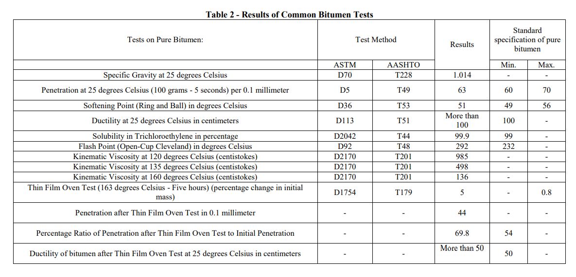 Respectfully, with reference to the letter dated October 12, 2013, enclosed herewith are the test results of the requested tests conducted on pure bitumen (bitumen 60/70 available in the laboratory) and the polymer-modified bitumen sent by the applicant.