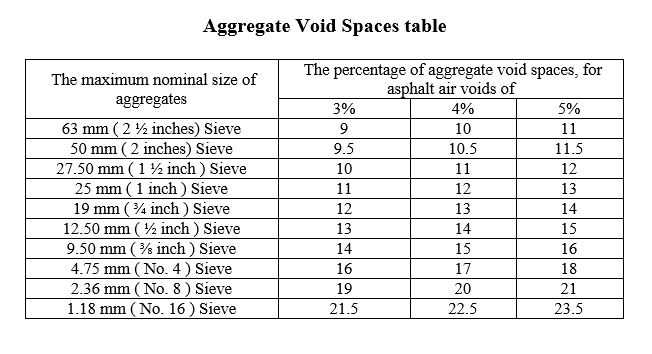 7 and by considering the “Asphalt Mixtures Continuous Gradation Table.” This determination is made using either T245 or D5581 methods and considering the “Table of Aggregate Void Spaces” for determining the void in mineral aggregate, along with the recommendations of MS2 Asphalt Institute manual, resulting in 6.1% relative to the weight of the asphalt mixture. It is worth mentioning that other parameters of the asphalt mixture are controlled and within the specified allowable range for this percentage. It is evident that any changes in the particle size distribution of aggregate materials and mixing ratios necessitate reevaluation and control of asphalt mixture parameters, including the optimum bitumen content.